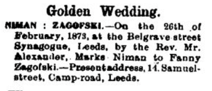 Davis NIMAN Married Annie NIMAN & had 2 Children, all events in LEEDS