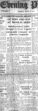 Joseph Married Lucy Ann MOSS in 1926 in GRIMSBY & lived there until moving to HITCHEN, which is where he lived at the time of his death. He was known as Joseph Gilbert MYERS as he took his Mother’s adopted Surname, & worked as a Custom Excise Officer. He was on holiday with his Wife Lucy & Son Peter, staying at the White Gables Hotel GUERNSEY, when he went swimming one afternoon, got into difficulties, & despite Lucy & Peter trying to save him, he died.